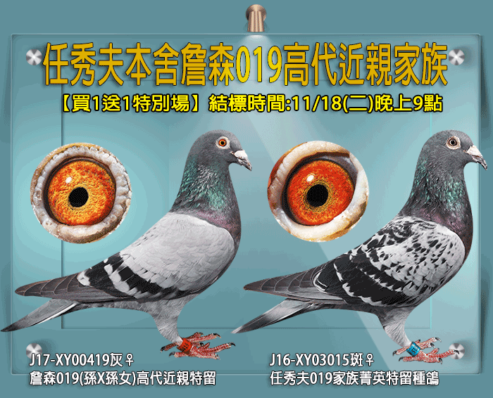 2025/11/12-11/18【買1送1特別場】秘藏日本任秀夫本舍-詹森019多重近親《※本場為全數出清,若性別錯誤及無法生育,則無法退鴿退款,請謹慎下標!》