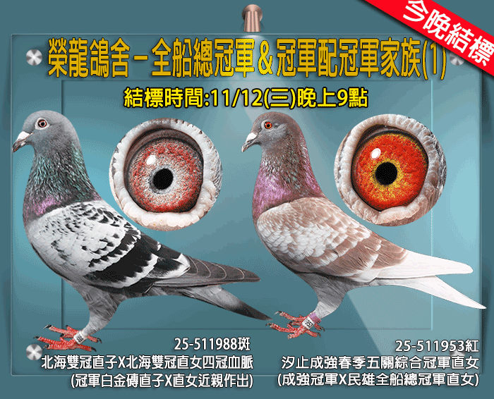 基隆榮龍鴿舍—全船總冠軍&冠軍配冠軍夢幻家族–隆重登場!!