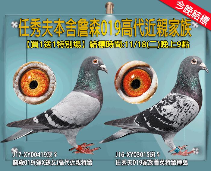 2025/11/12-11/18【買1送1特別場】秘藏日本任秀夫本舍-詹森019多重近親〔鴿在台灣,免國際運費!〕《※本場為全數出清,若性別錯誤及無法生育,則無法退鴿退款,請謹慎下標!》