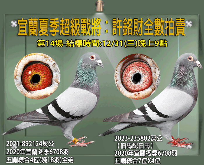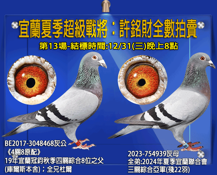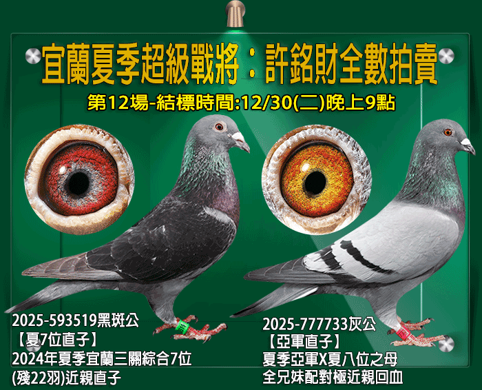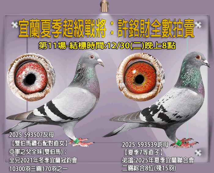 宜蘭許銘財-紀錄鴿原配對賽鴿全數公開拍賣