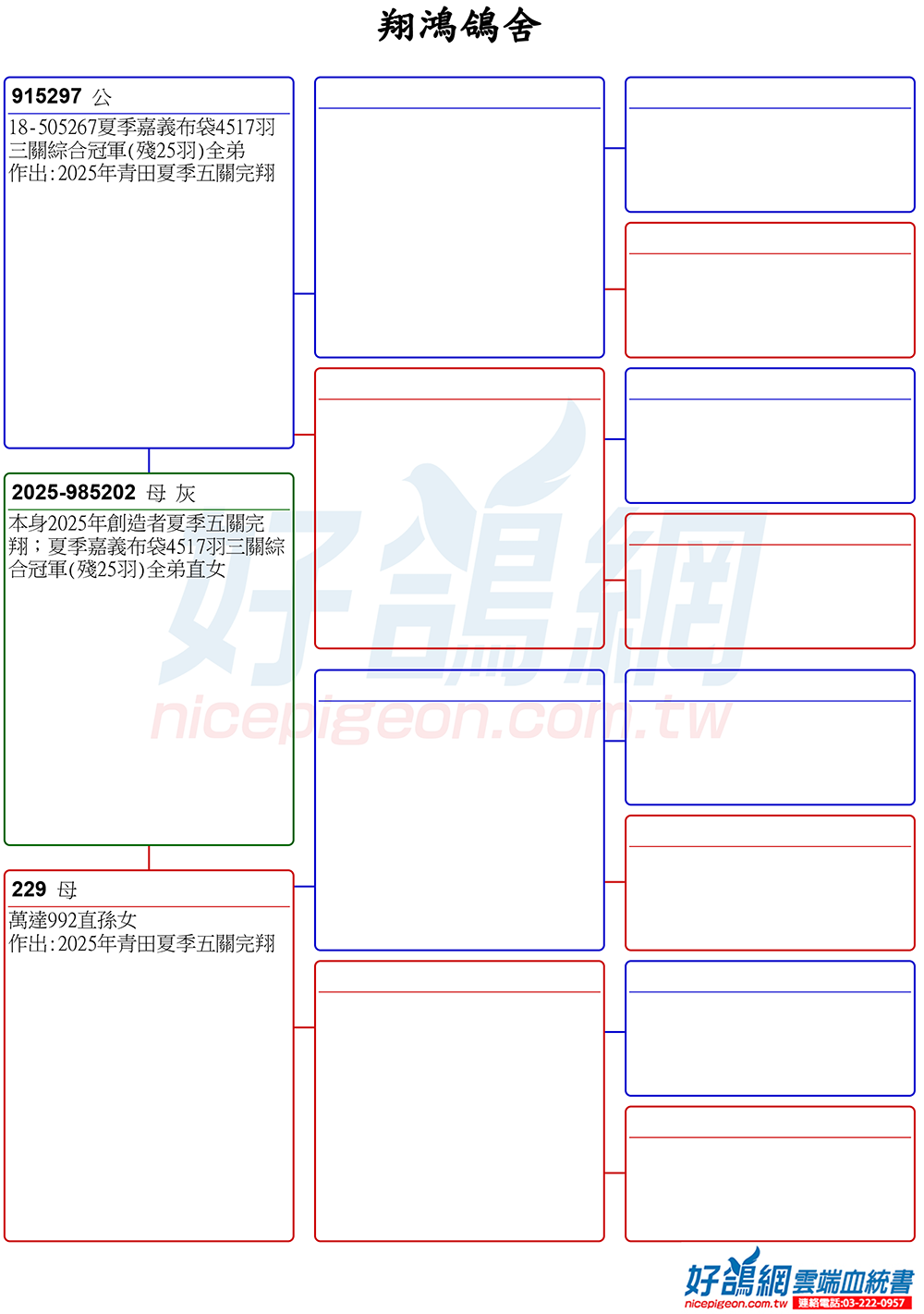 【完翔鴿】本身2025年創造者夏季五關完翔;夏季嘉義布袋4517羽三關綜合冠軍(殘25羽)全弟直女