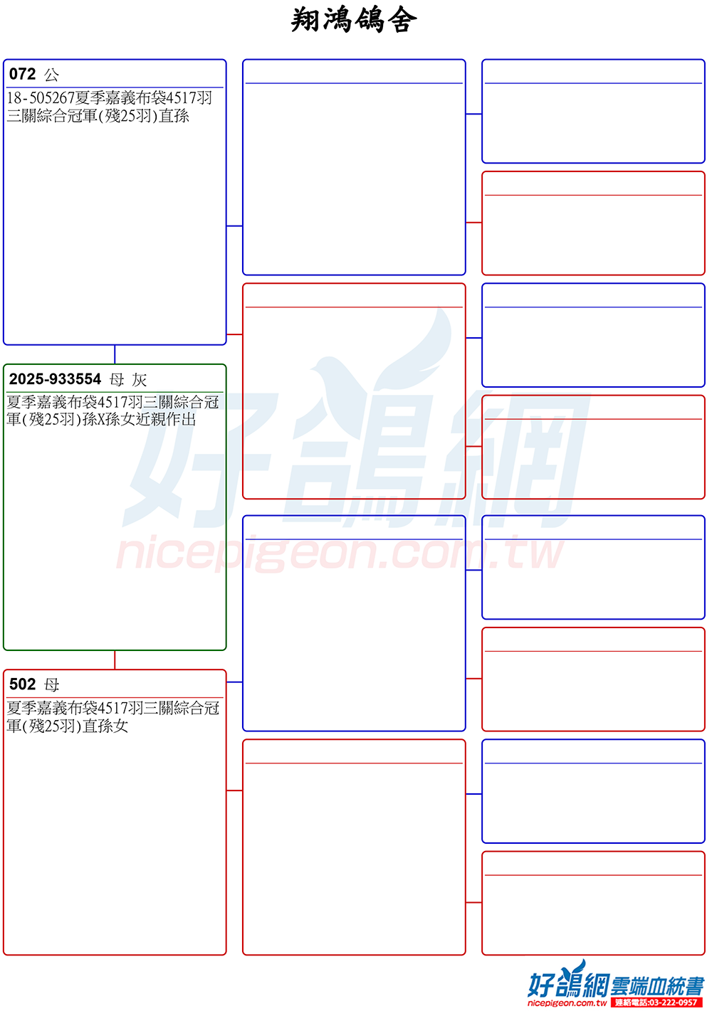 【特留種鴿】夏季嘉義布袋4517羽三關綜合冠軍(殘25羽)孫X孫女近親作出