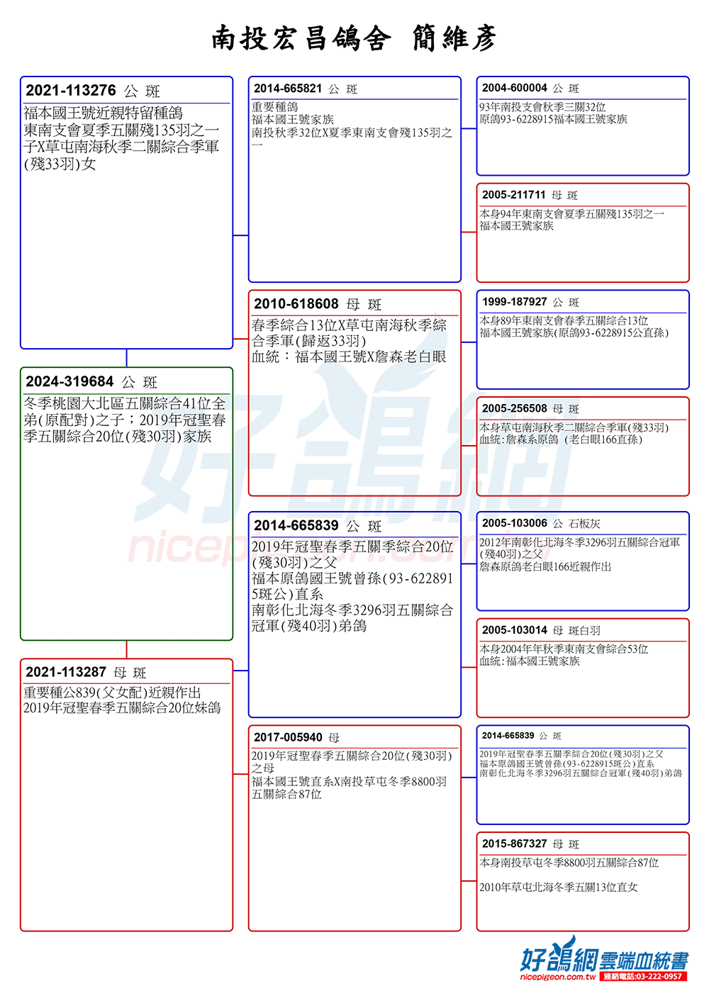 冬季桃園大北區五關綜合41位全弟(原配對)之子;2019年冠聖春季五關綜合20位(殘30羽)家族