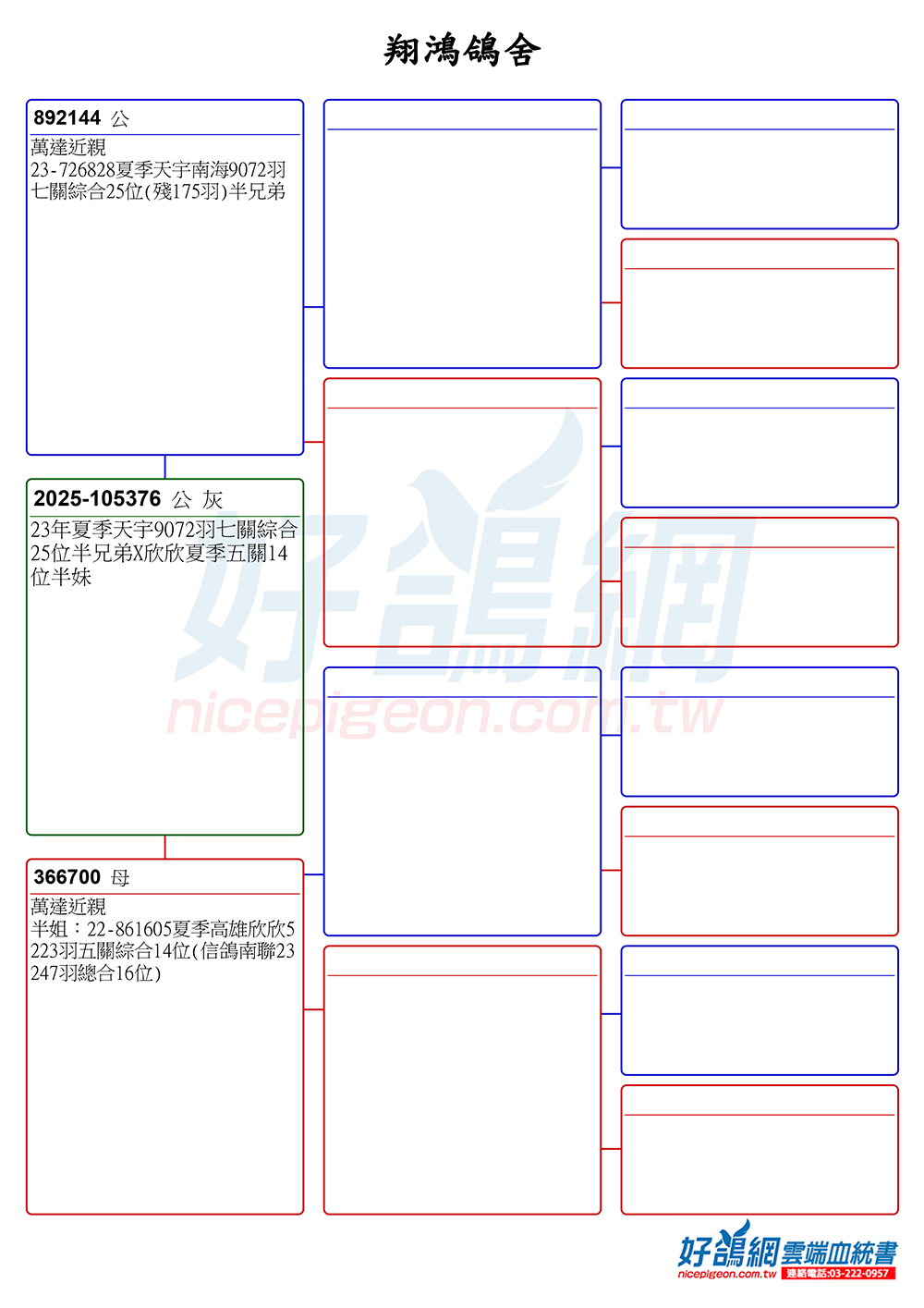 【完翔鴿】本身2025年創造者夏季五關完翔;夏季嘉義布袋4517羽三關綜合冠軍(殘25羽)全弟直女