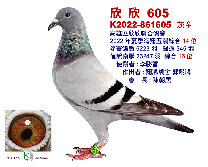 22-861605夏季高雄欣欣5223羽五關綜合14位(信鴿南聯23247羽總合16位)