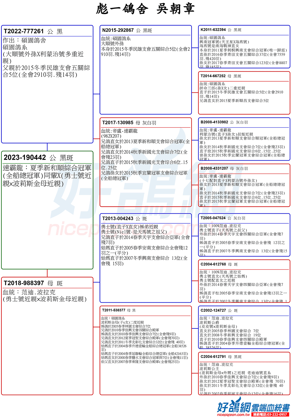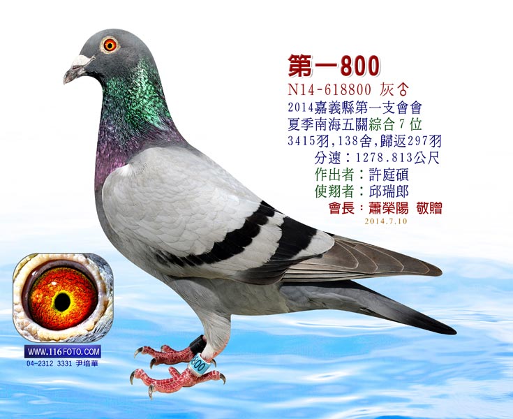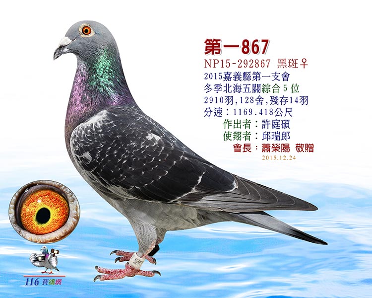 祖父:N2015-292867冬季嘉義第一支會2910羽五關綜合5位(殘14羽)