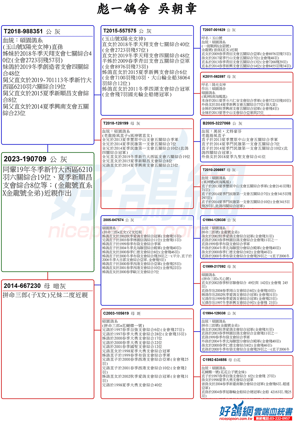 同輩19年冬季新竹大西區6210羽六關綜合19位、夏季新順昌支會綜合8位等;(金龍號直系X金龍號全弟)近親作出