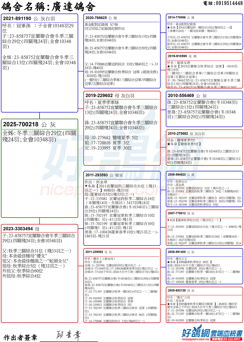 ▲外祖父:11-293593秋季宜蘭冠鈞三關綜合31位(殘33羽之一)