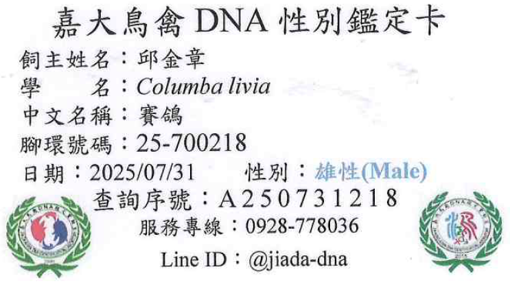 2024年北海春季台中久聖三關綜合7位(殘8羽)種鴿提供