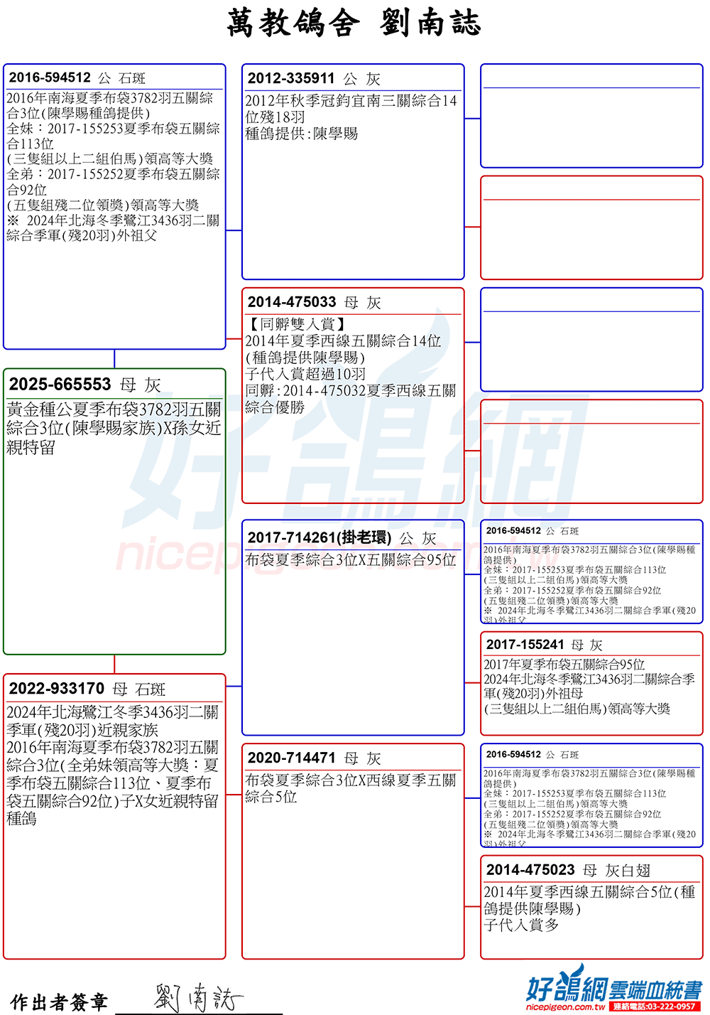 ▲父鴿、外曾祖父:2016-594512夏季嘉義布袋五關綜合季軍