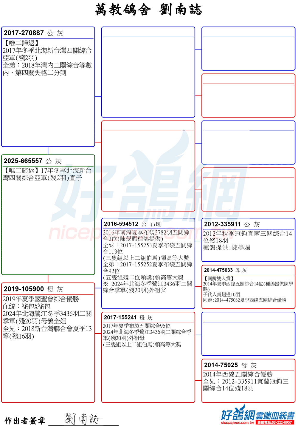 ▲父鴿:2017-270887冬季新台灣四關綜合亞軍