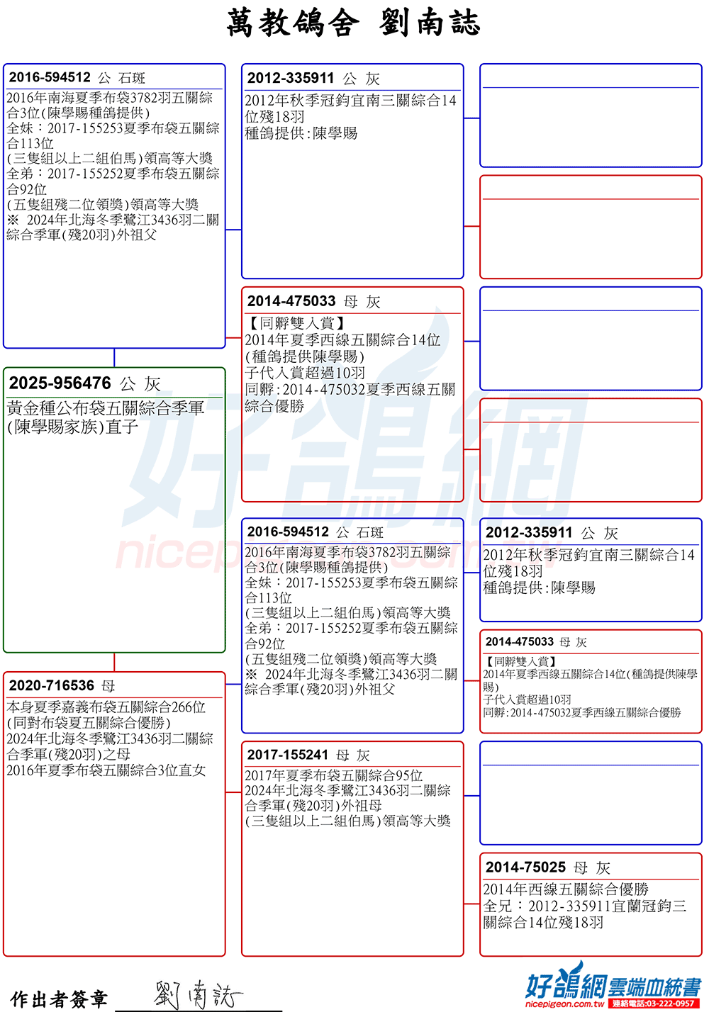▲父鴿、外祖父:2016-594512夏季嘉義布袋五關綜合季軍