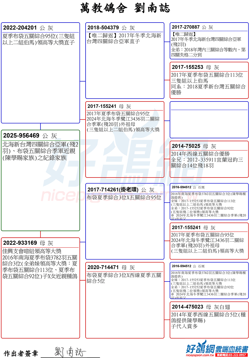 北海新台灣四關綜合亞軍(殘2羽)、布袋五關綜合季軍近親(陳學賜家族)之紀錄家族