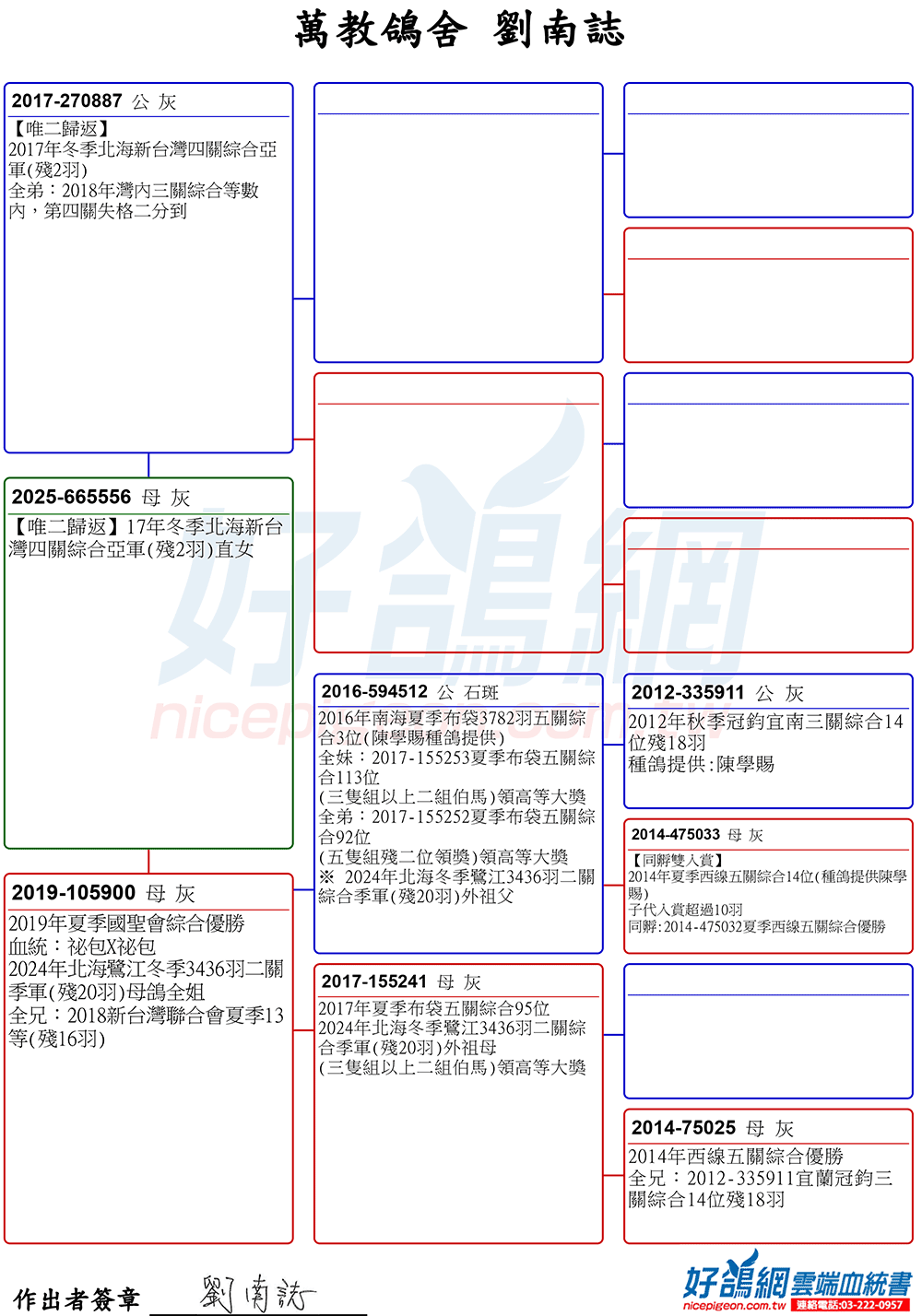 ▲父鴿:2017-270887冬季新台灣四關綜合亞軍