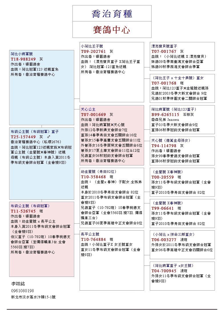 布袋冬季綜合冠軍(殘9羽)直子;詹森荷比123近親家族