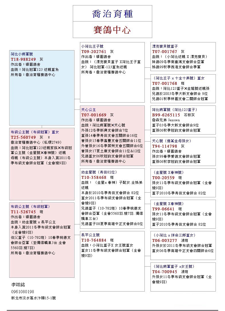 布袋冬季綜合冠軍(殘9羽)直女;詹森荷比123近親家族