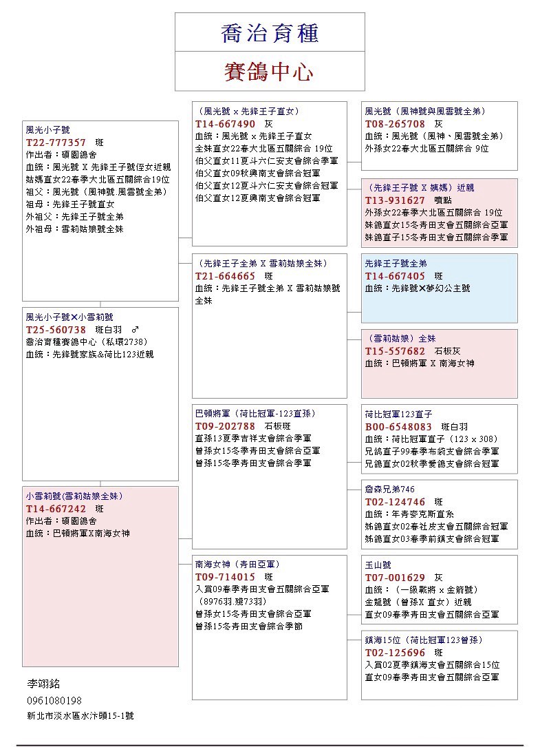 外祖母:T09-714015春季屏東青田8976羽五關綜合亞軍