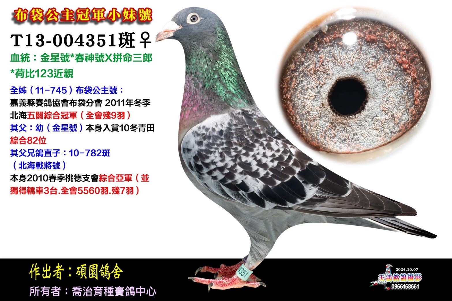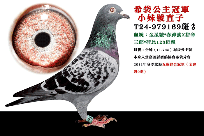 ▲母鴿:T13-004351布袋公主冠軍小妹號