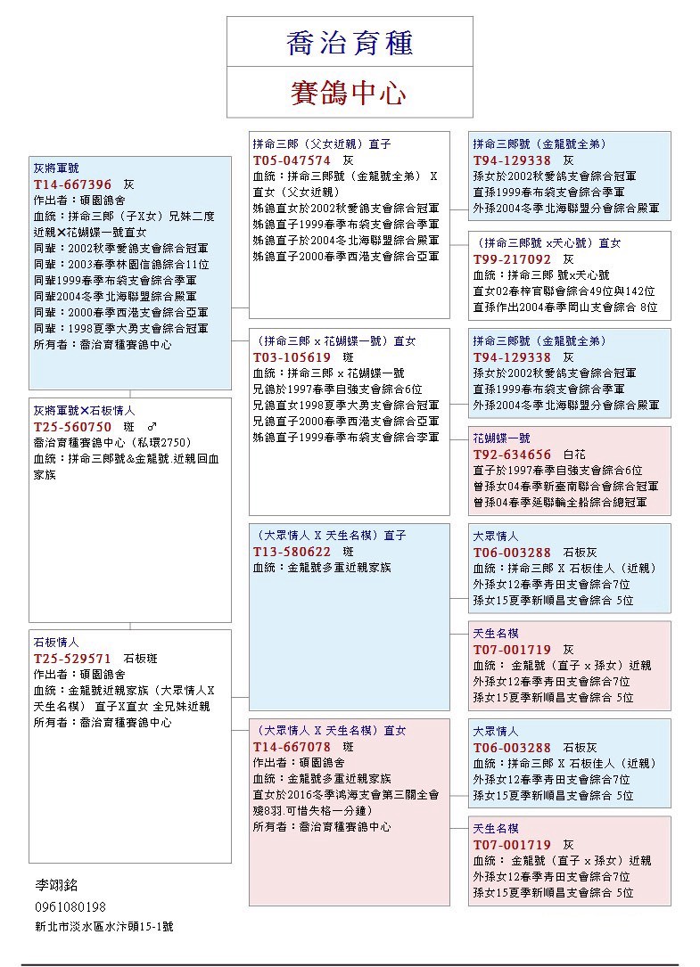 夏季布袋五關綜合3位直子X冬季北海新台灣四關綜合亞軍(殘2羽)子女配近親