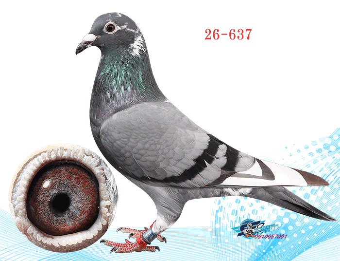 本舍詹森(黃金種公)原配對直子近親作出,骨骼特硬,竹筒長身,圓背,蝦尾,包身,詹森鴿中少有黑灰鴿,可在惡烈天氣,下大雨,濃霧天,勇奪單關冠軍。