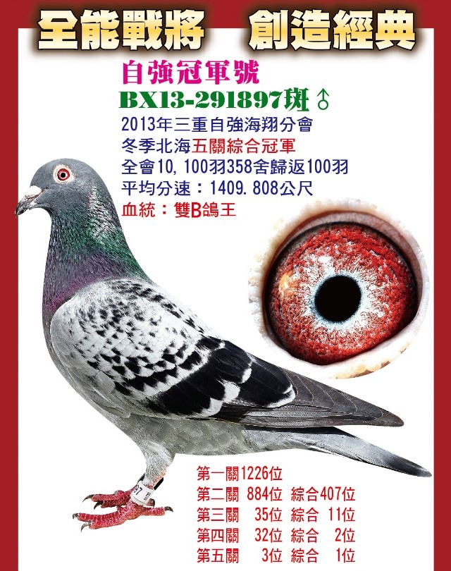 今年(2025)夏季再度在酷暑燠熱的逆風賽事,入賞宜蘭聯合會全會2195羽二關殘15羽的殘局中,獲得二關綜合8位,再次以實績展現其鴿系在逆風殘局的超強戰力。