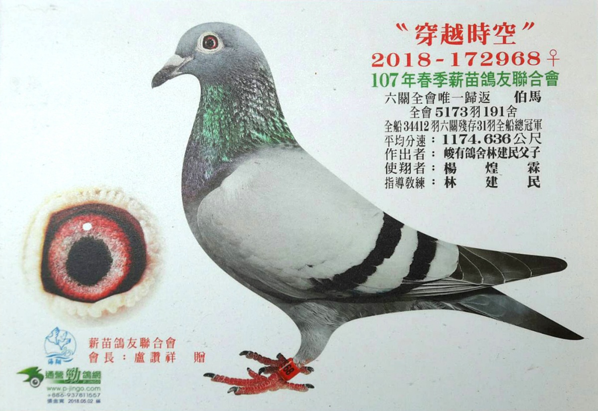 ▲母鴿:T18-172968春季薪苗5173羽六關全會唯一歸返伯馬(全船34412羽全船總冠軍)