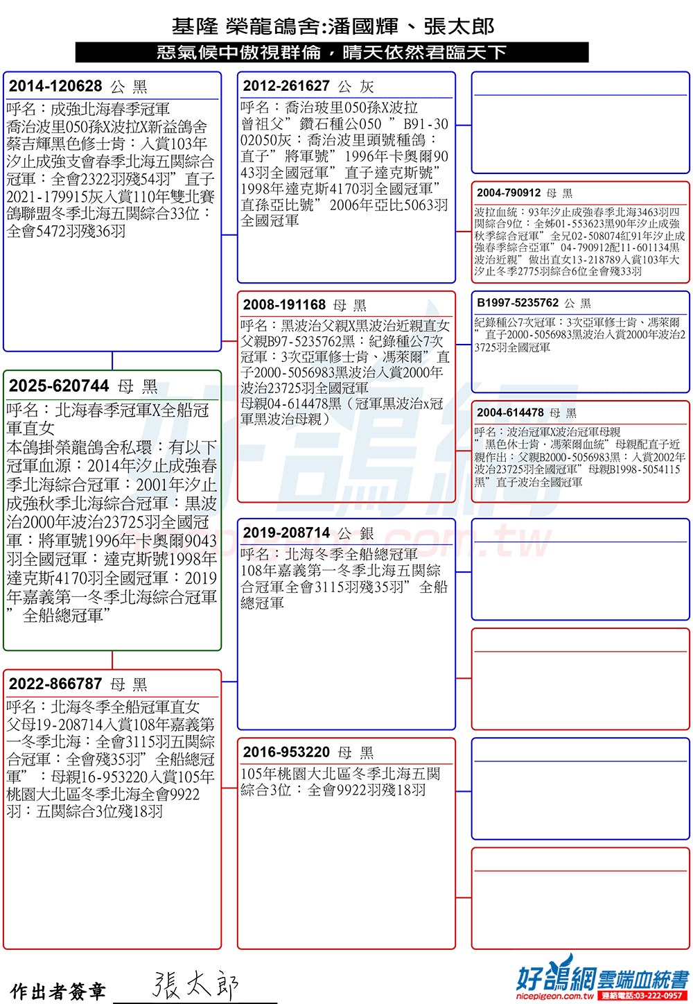 ▲父鴿:14-120628春季汐止成強2322羽五關綜合冠軍