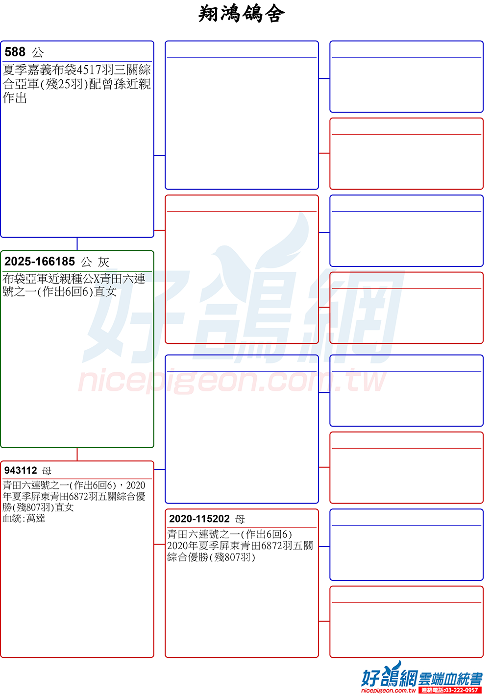 【北海冬季未賽鴿】布袋亞軍近親種公X青田六連號之一(作出6回6)直女