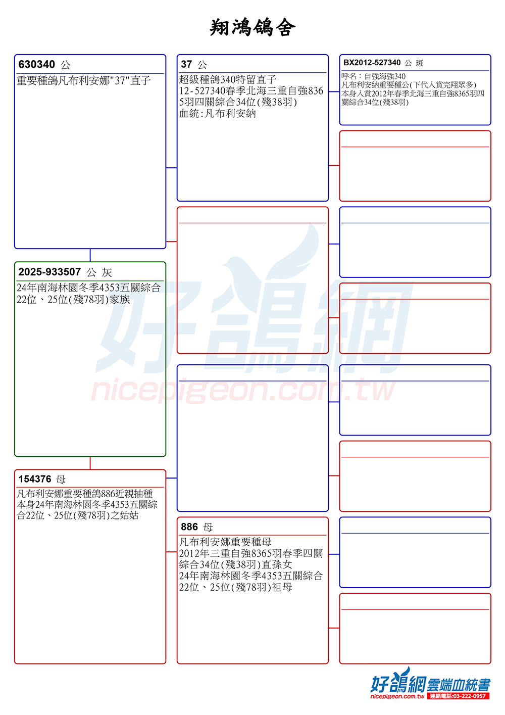 ▲曾祖父:BX2012-527340春季北海三重自強8365羽四關綜合34位(殘38羽)