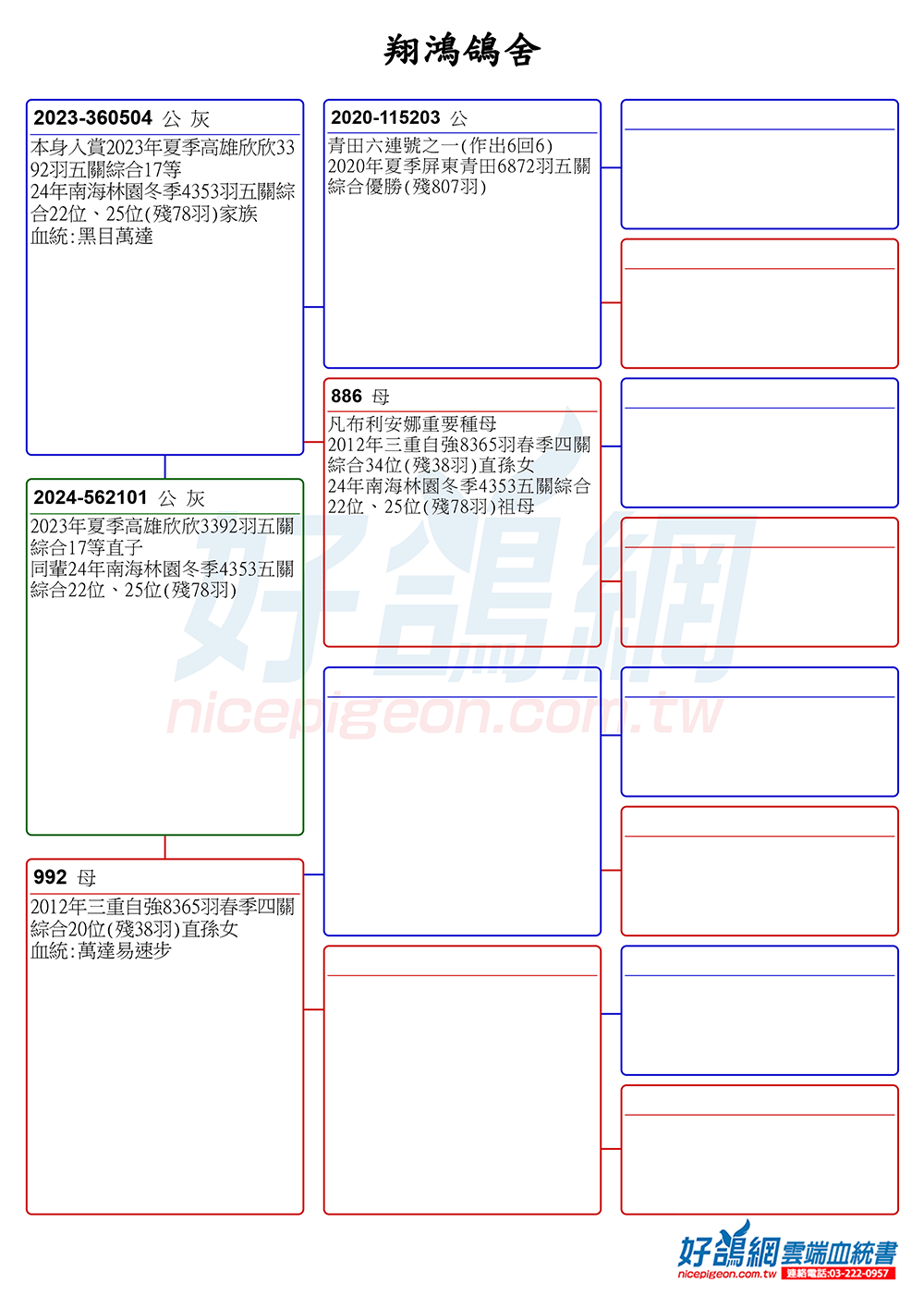 【完翔鴿】本身2025年創造者夏季五關完翔;夏季嘉義布袋4517羽三關綜合冠軍(殘25羽)全弟直女