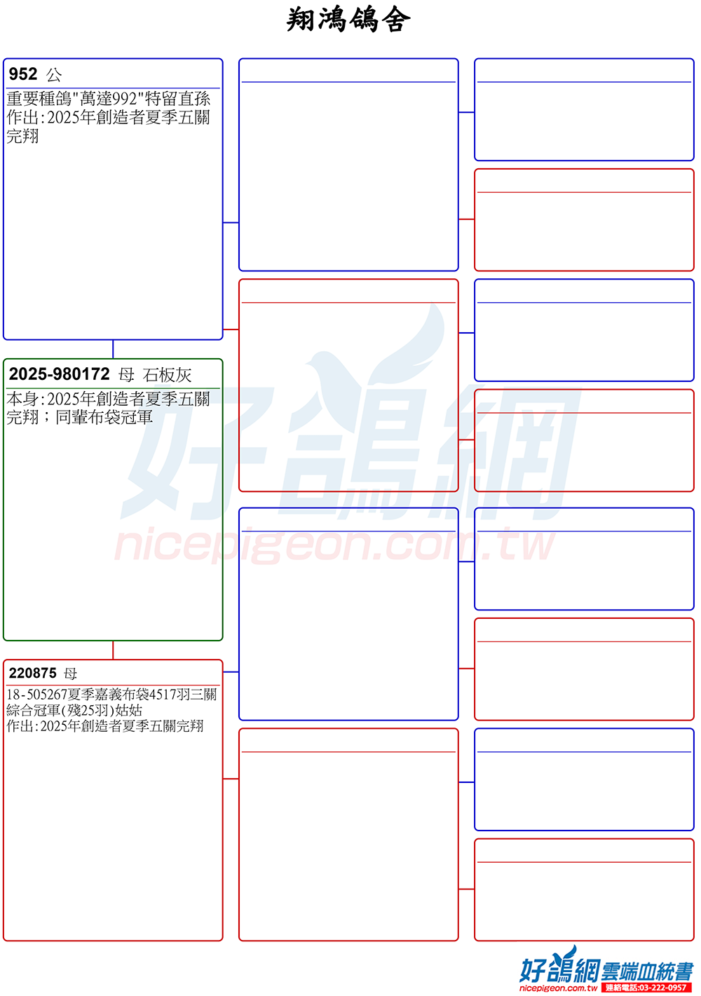 【完翔鴿】本身2025年創造者夏季五關完翔;夏季嘉義布袋4517羽三關綜合冠軍(殘25羽)全弟直女
