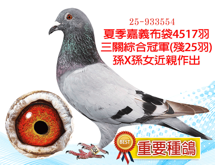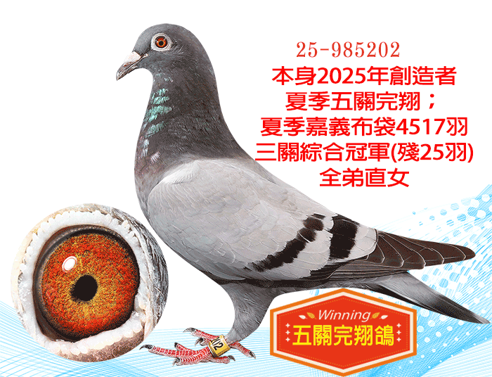 【北海冬季未賽鴿】夏季嘉義布袋4517羽三關綜合冠軍近親作出