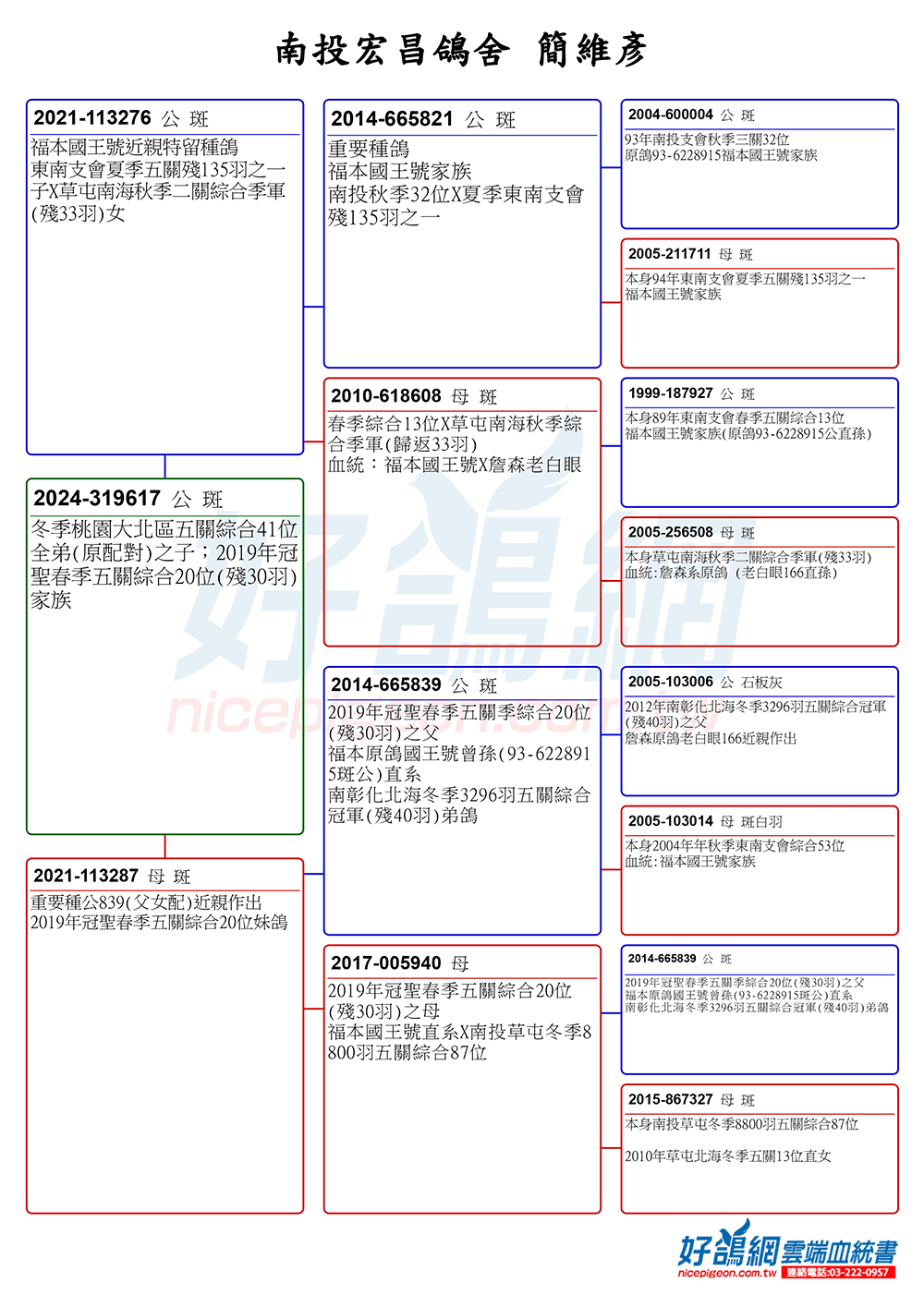 冬季桃園大北區五關綜合41位全弟(原配對)之子;2019年冠聖春季五關綜合20位(殘30羽)家族