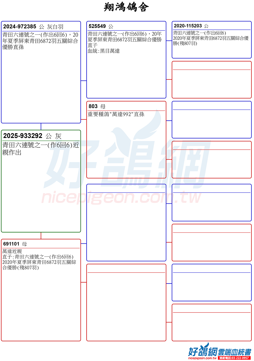 【完翔鴿】本身2025年創造者夏季五關完翔;夏季嘉義布袋4517羽三關綜合冠軍(殘25羽)全弟直女