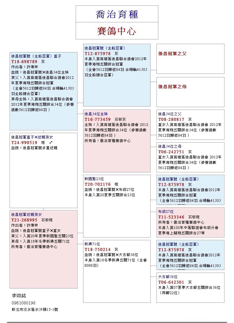 後昌夏季五關綜合冠軍(全船亞軍)子配孫女多重近親