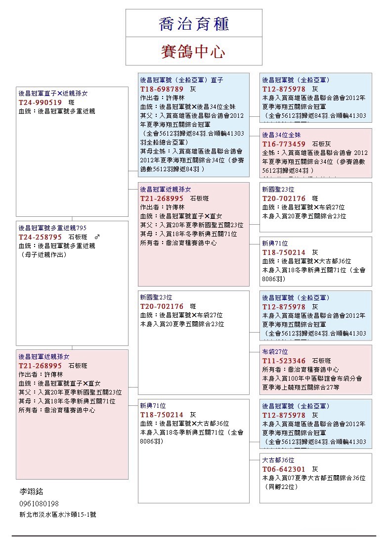 第一關單關99位、129位、142位、159位、166位(集鴿2265羽歸返189羽,0.8成歸返率,本舍佔5羽,並榮獲雙隻組伯馬賞)