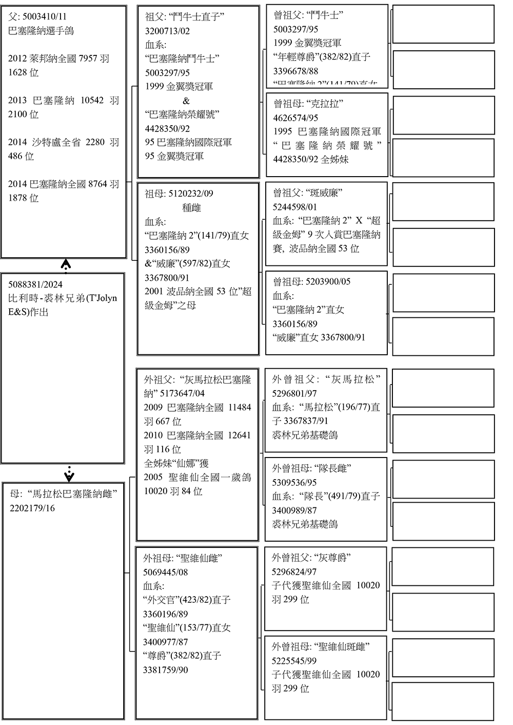 (巴塞隆納選手鴿)鬥牛士直孫X馬拉松直系種母