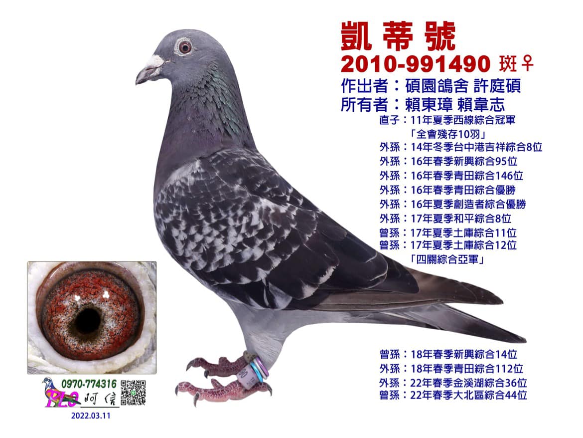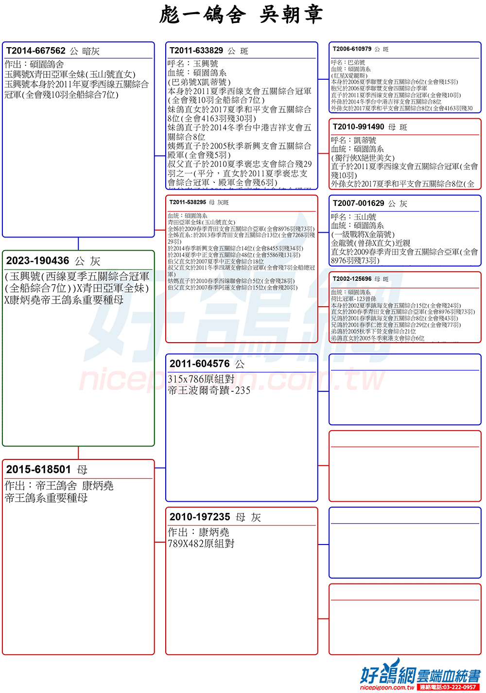 (玉興號(西線夏季五關綜合冠軍(全船綜合7位))X青田亞軍全妹)X康炳堯帝王鴿系重要種母