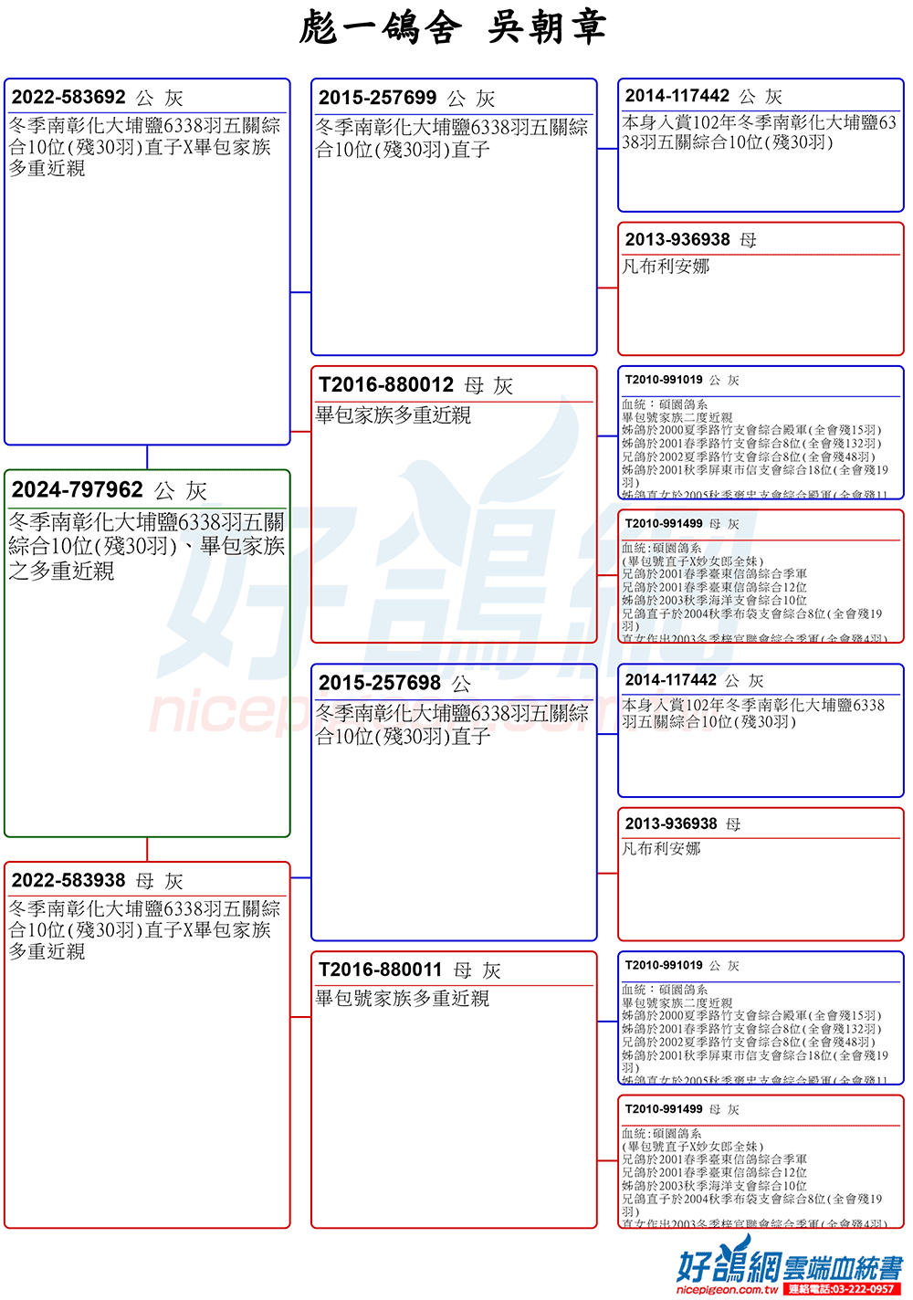 冬季南彰化大埔鹽6338羽五關綜合10位(殘30羽)、畢包家族之多重近親