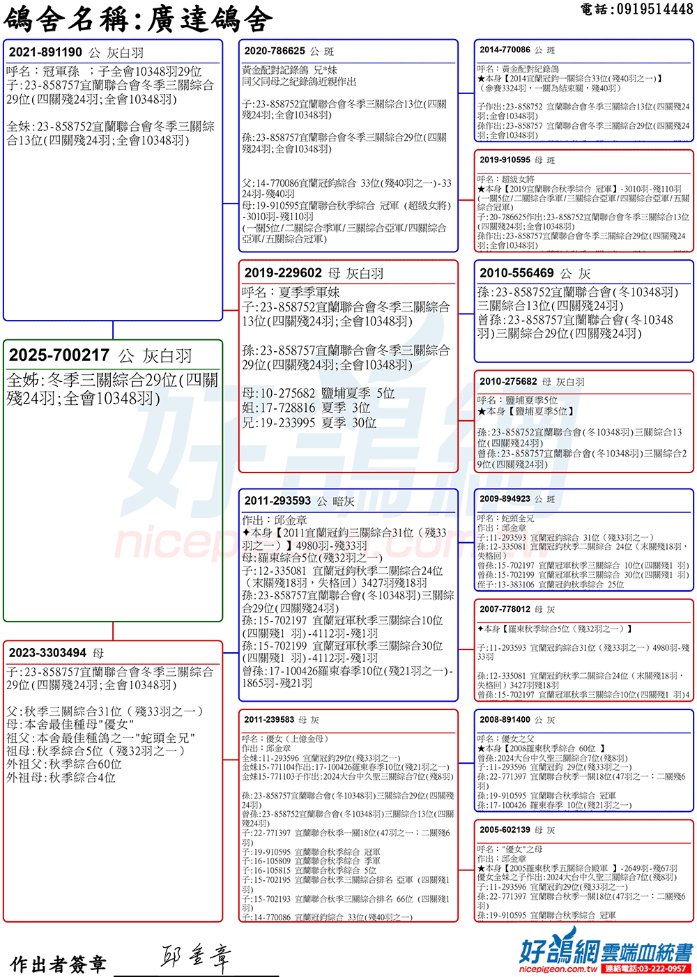 ▲外祖父:11-293593秋季宜蘭冠鈞三關綜合31位(殘33羽之一)