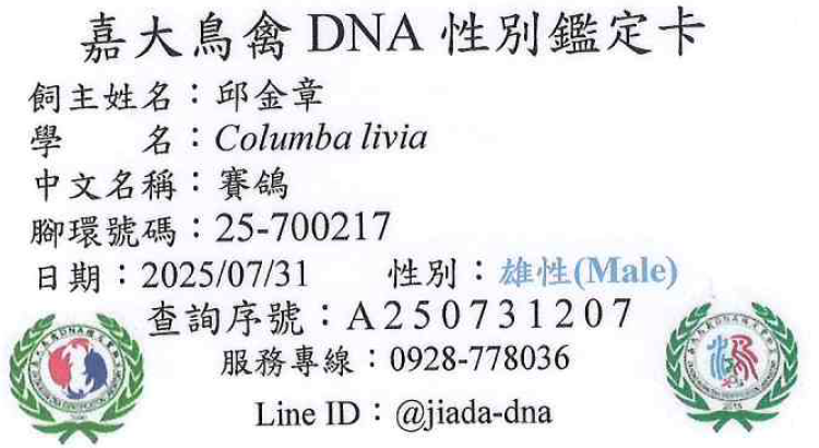 2024年北海春季台中久聖三關綜合7位(殘8羽)種鴿提供