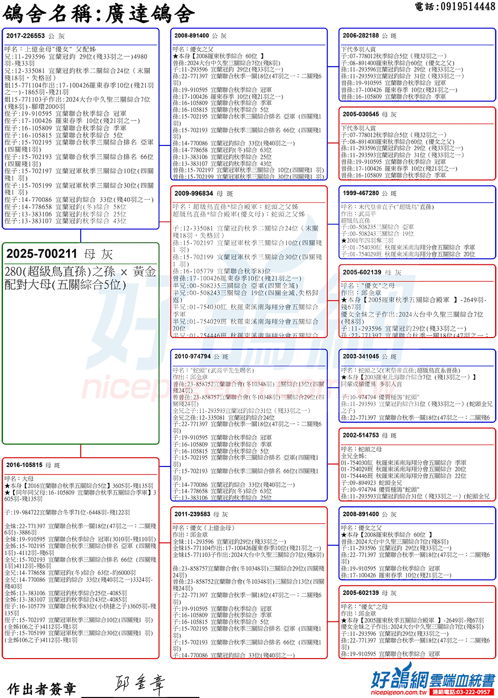 280(超級鳥直孫)之孫×黃金配對大母(五關綜合5位)
