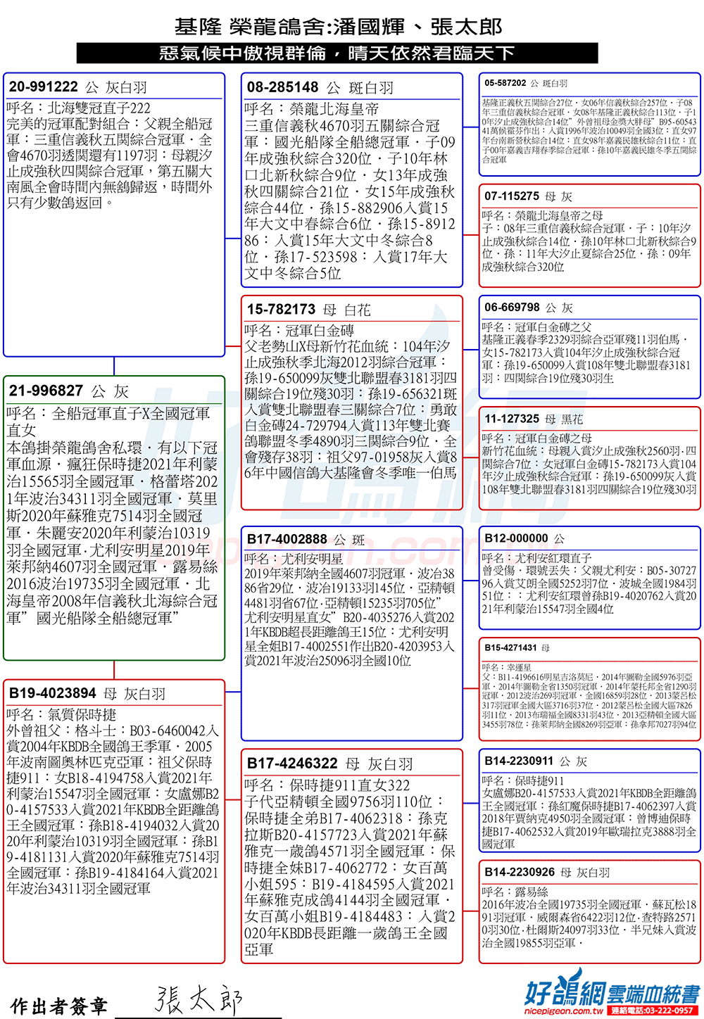 ▲父鴿:20-991222北海冠軍直子222