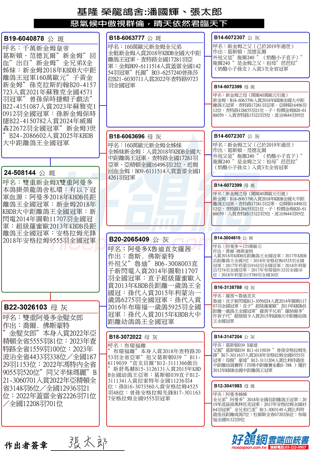 ▲父鴿:B19-6040878千萬新金姆皇帝
