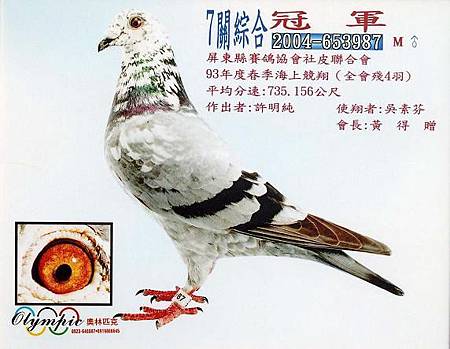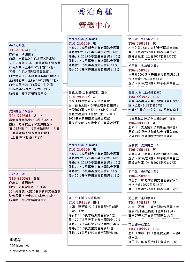 ▲外曾祖父:T01-350513夏季港口支會五關綜合季軍(全會殘4羽)