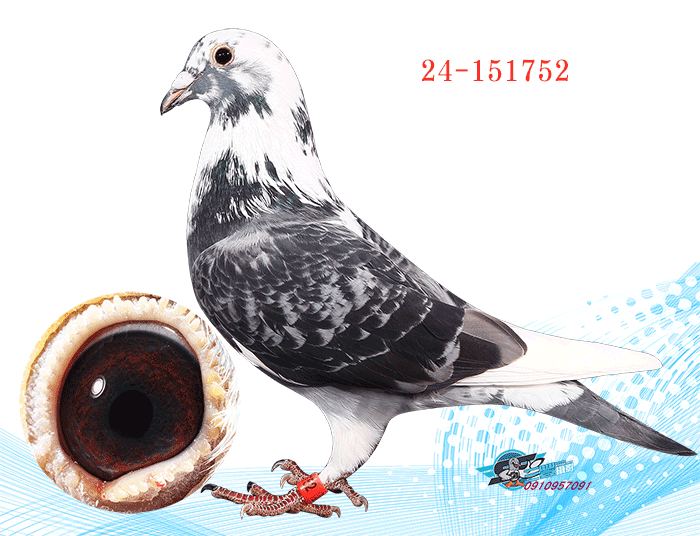 (4)91-02316灰白羽♂黑李3 1 6,其父鴿血統為林波爾,母鴿血統為老西翁系,這羽超級鴿是在1991年自強豪黑李處引進,下代翔續都有延續綜合性及快速歸巢之本能。