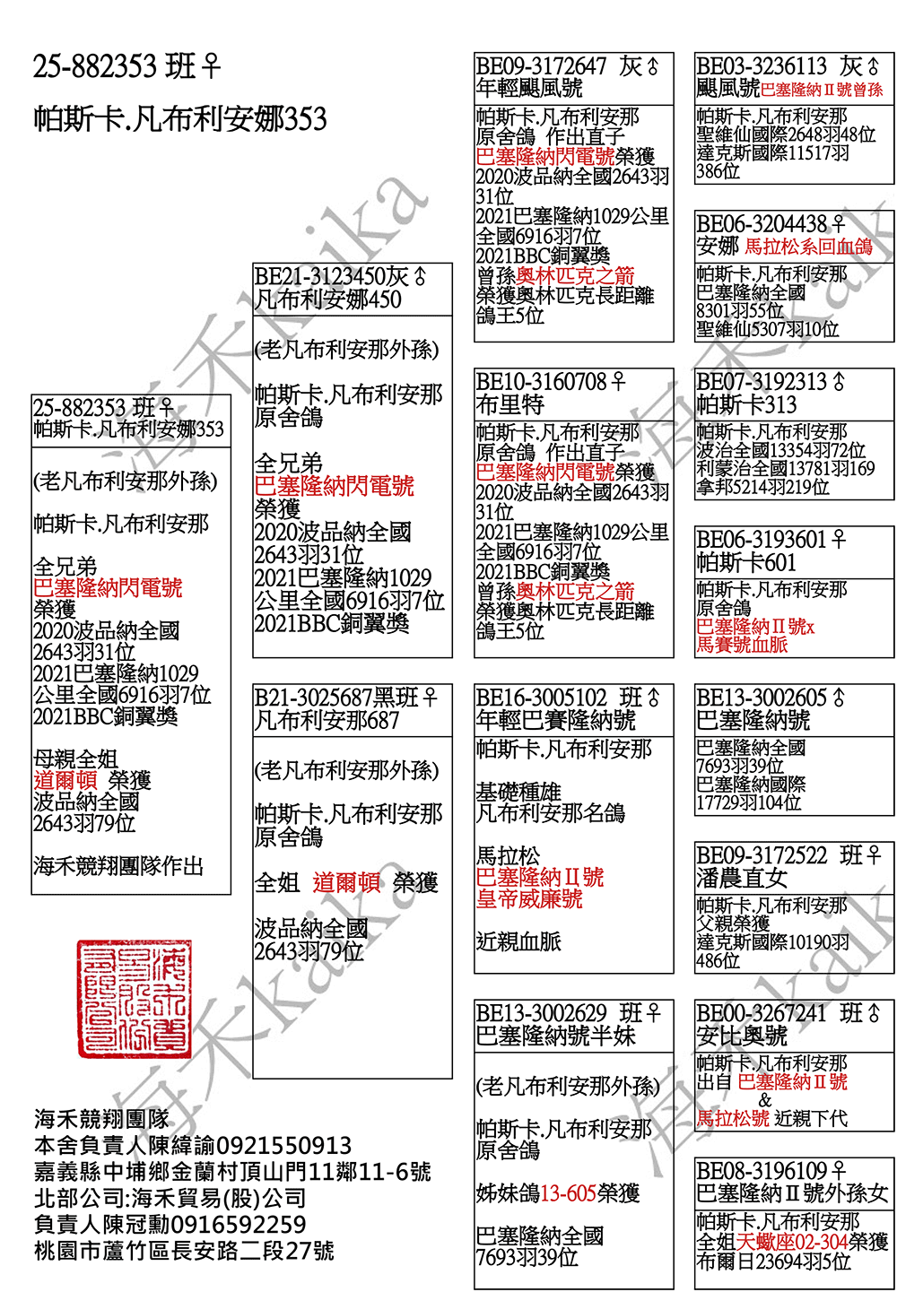 桃園中山五關綜合20位家族;德國鴿王303(卡登波)多重近親