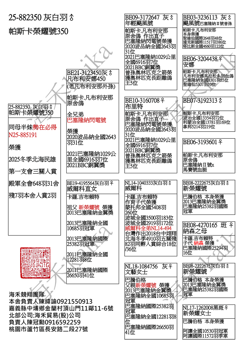 桃園中山五關綜合20位家族;德國鴿王303(卡登波)多重近親