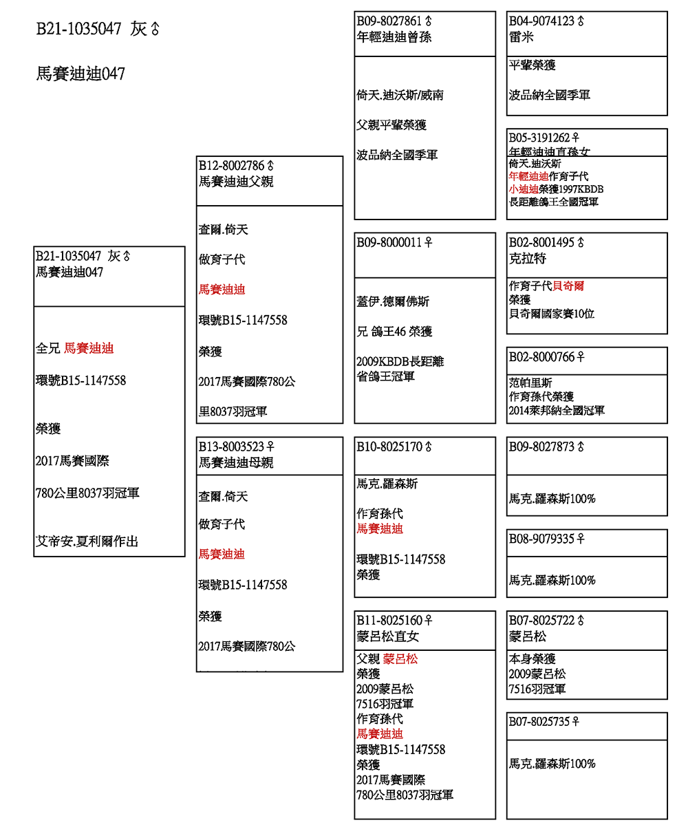 桃園中山五關綜合20位家族;德國鴿王303(卡登波)多重近親