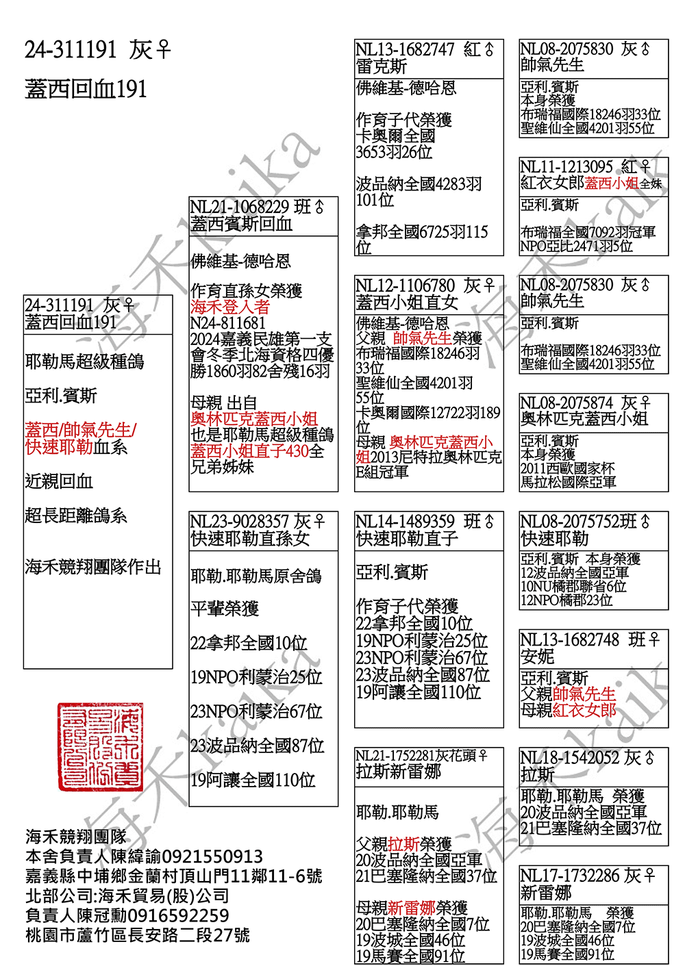 帥氣先生(布瑞福國際18246羽33位)近親;24年民雄冬季北海優勝(殘16羽)家族